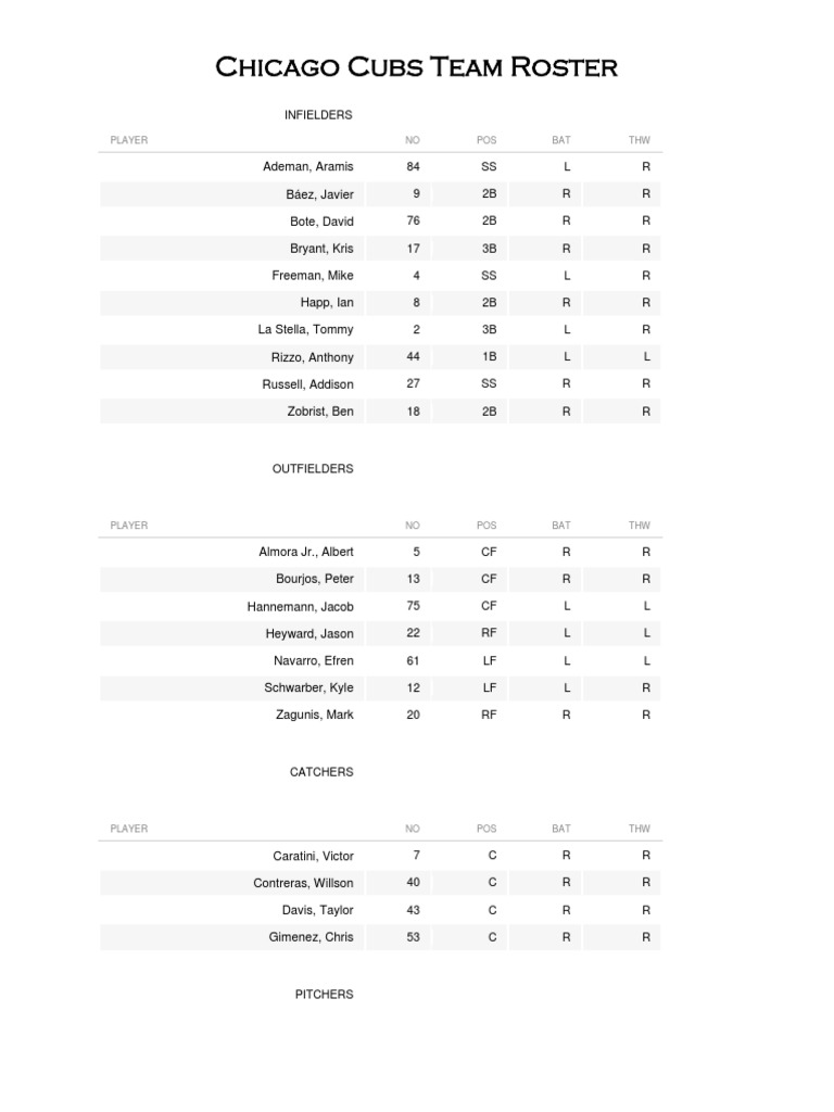 Chicago Cubs Team Roster PDF Chicago Cubs Major League Baseball
