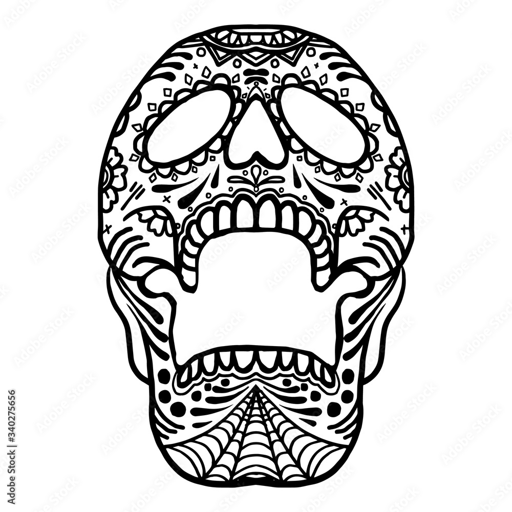 Black and White Sugar Skull Tattoo design Stock Illustration Adobe Stock