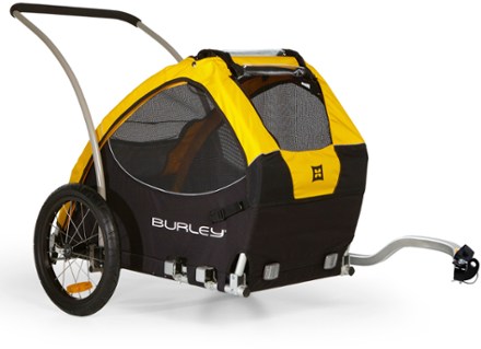 Shop the safest pet bike trailers, today! Burley's pet bike trailers let you explore the outdoors with small and large dogs and pets. Whether you have a small or large pet, our trailers offer ample space and ventilation, allowing your pet to ride in style. Zippered panels roll up to. 2 in 1 pet bicycle trailer with a 6 stroller.