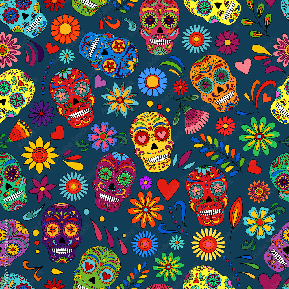 Day of the Dead skulls pattern. Dia de los muertos print. Day of the