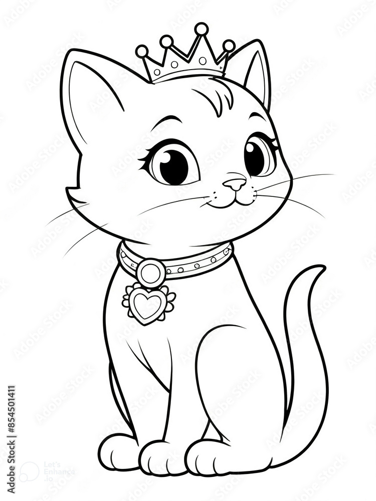 Cartoon princess cat coloring page for kids Stock Illustration Adobe