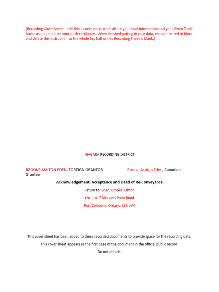 The information on this sheet is a reflection of the. A cover page template for documents that do not have a 3 x 3 inch space on the first page. Adobe acrobat reader or comparable pdf reader software is. And when recorded mail to: It includes the document title, return document to,.