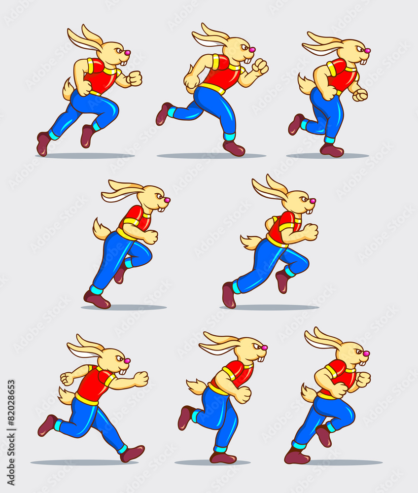 Running rabbit cartoon character sprite sheet game asset Stock Vector
