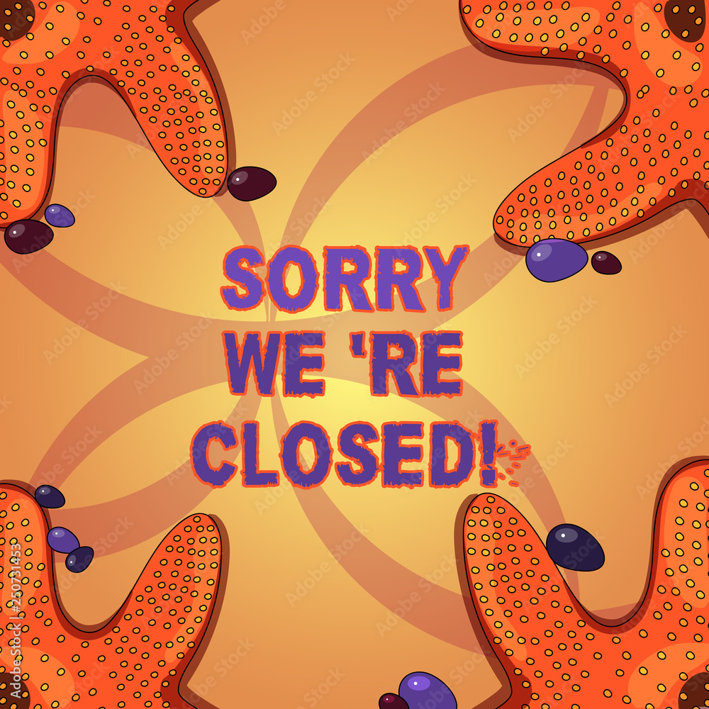 Writing note showing Sorry We Re Closed. Business photo showcasing