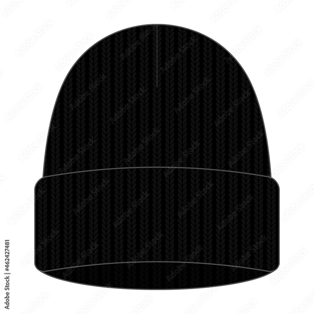 Beanie hat (knit cap) template vector illustration Black Stock Vector