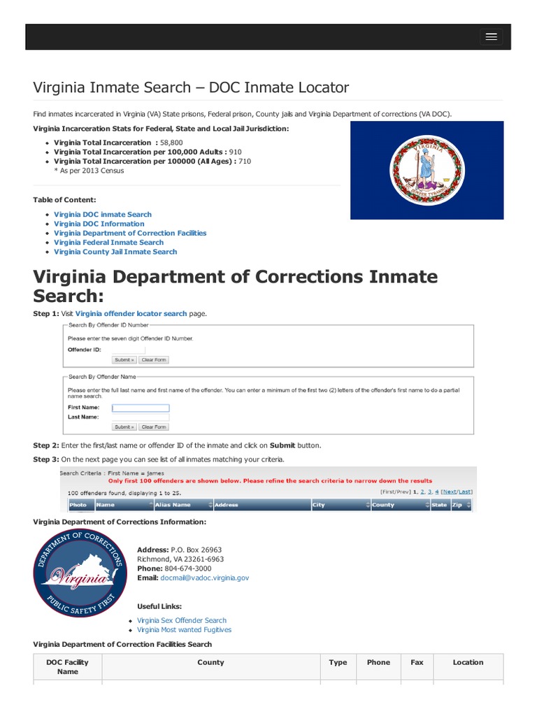 Virginia Inmate Search VA Department of Corrections Inmate Locator