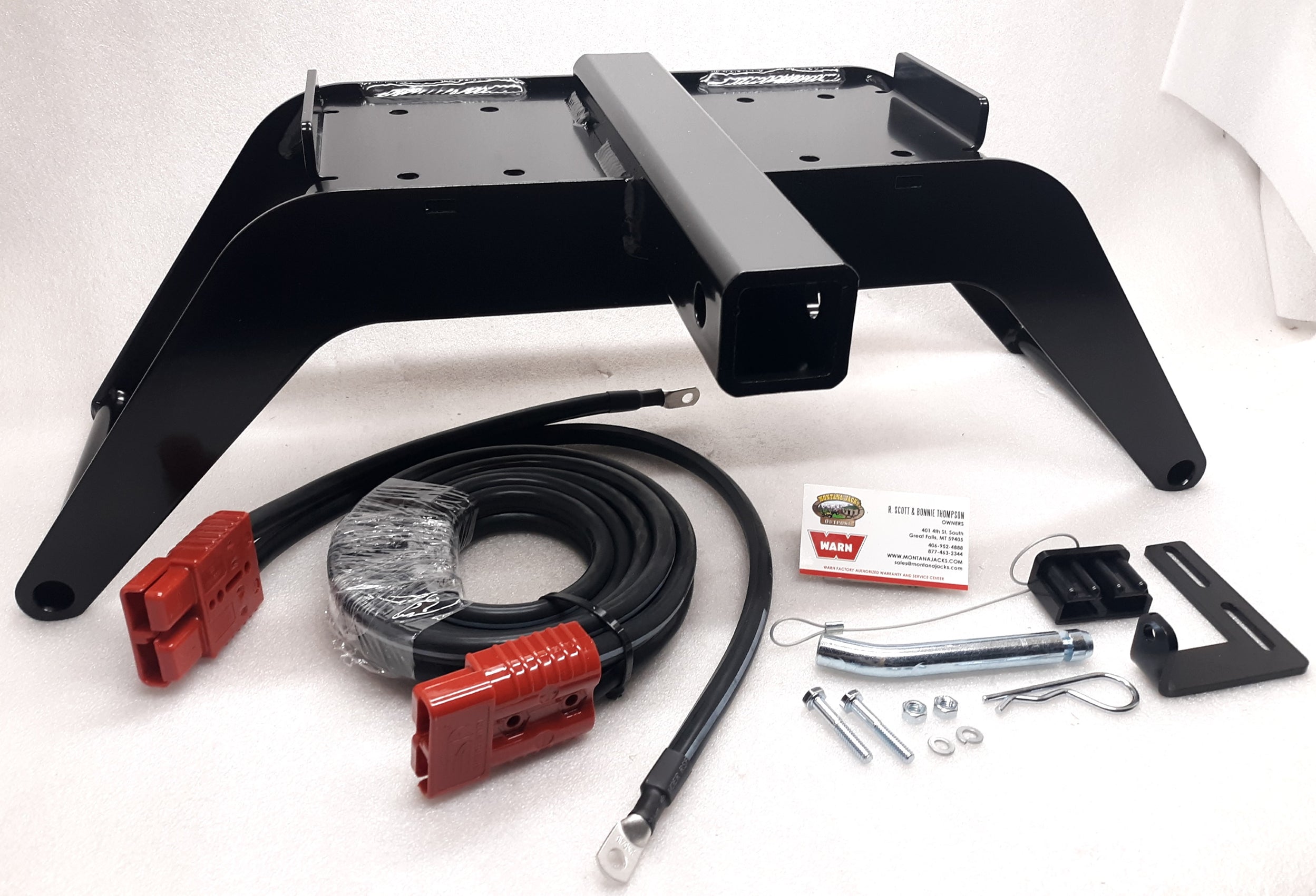 The warn winch hitch adapter mounting plate is used to mount warn 2000 dc, 4000 dc and 4700 dc utility winches. Easy installation and mounts directly on most vehicle frames. Simplest way to mount your portable winch.